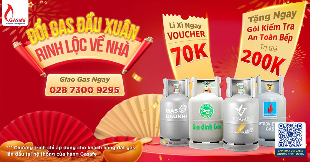Bạn đang tìm kiếm dịch vụ giao gas uy tín, giá tốt, nhanh chóng để chuẩn bị cho những bữa cơm ấm cúng? Đừng bỏ lỡ chương trình ưu đãi cực khủng “Đổi Gas Đầu Xuân – Rinh Lộc Về Nhà” duy nhất tại hệ thống Gasafe. Nhận ngay lì xì Voucher 70K và gói kiểm tra an toàn bếp trị giá 200K!